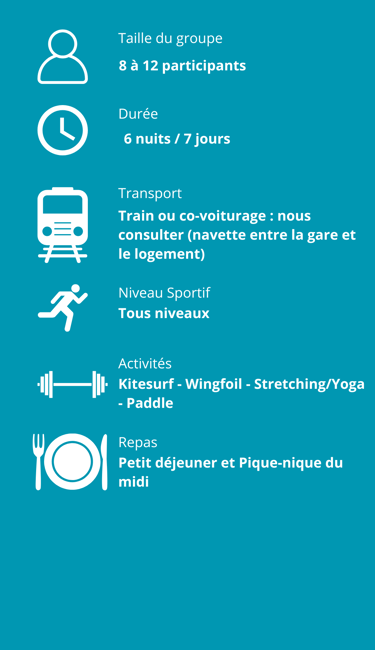 Rejoignez-nous pour un séjour sportif unique entre terre et mer, au cœur du Morbihan et de la presqu’île de Quiberon. Pendant plusieurs jours, partez à la découverte des plus beaux spots de kitesurf et de wingfoil de la région, dans une ambiance conviviale et détendue.